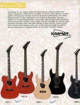 As stated before, the Ferrington outlines were like many of Kramer's endeavors and had been guaranteed way before Kramer could deliver. Consequently, several models arrived prior to Kramer went under and several are uncommon to demonstrate up today. The line managed to get before end in 1990 from which time Danny Ferrington moved to L.A. and continued to make and create guitars in a custom store style for big-name musicians beneath the business title Ferrington Guitars, Inc. With Andy Pappicio, the previous V.P. of Kramer as president, the line struggled on. The sole designs that were being made now were the KFS-1 and 2, the KFT-1 and 2 and the KFB-1 bass with bolt-on necks and 3 musical organization EQs. Colors had been comparable as before: black colored, white, red, natural and cigarette sunburst. It's presumed this establishment couldn't final very long.