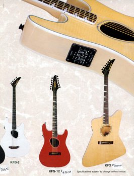 New this current year (late 87) had been the KFB-1 and KFB-2 basses which observed the binding/inlay scheme associated with guitars. In 1988, emerged the KFS-12 that was the Strat-styled 12 string version. It had binding and shark teeth inlays also.