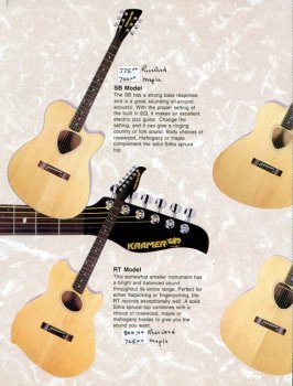 showcased glued-in necks, solid Sitka spruce tops, glued-on connection and an active 4 musical organization EQ system with sliders for volume, treble, midrange and bass. (see preceding ads)